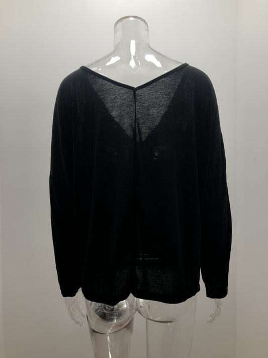 Simple big V-neck drop shoulder sleeve loose long-sleeved top
