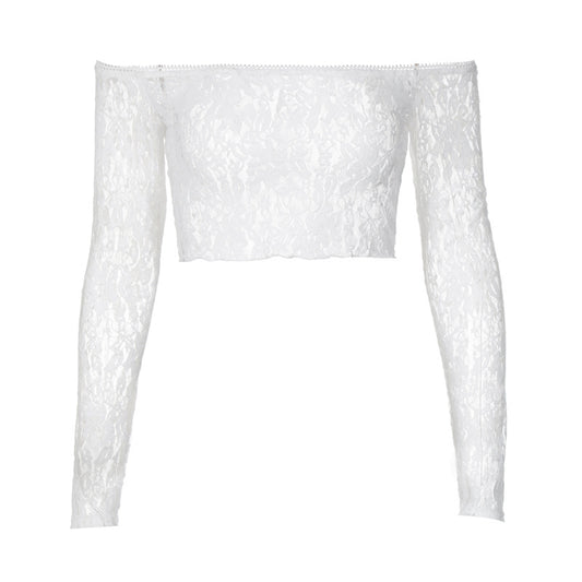 See-through Lace Chest Wrap Off-shoulder Collar Long Sleeve